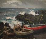ECOLE du XXème Ile de la Réunion, bateaux de pêche à Sainte Rose Huile sur toile située au dos 54 x 65 cm (toile distendue)