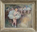 ECOLE début XXème Danseuses aux ballerines Huile sur toile signée en bas à droite 54 x 65 cm