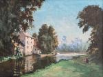 Fernand JEANNEAU (1884-1966) Quimperlé, aube d'été Huile sur toile signée en bas à droite 46 x 61 cm