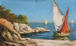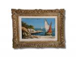 GIOVANI (XXème) Tartane en Méditerranée Huile sur isorel signée en bas à droite 30.5 x 50 cm