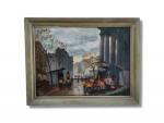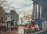 Constantin KLUGE [letton] (1912-2003) Paris, fleuristes près de la Madeleine Huile sur toile signée en bas à droite 42.5 x 57 cm