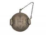 CUSTODE ronde en argent à décor gravé de la couronne d'épines et du monogramme IHS, l'intérieur en vermeil Apt, XVIIIème Maitre orfèvre: Claude MARTIN, décédé en 1710 D.: 4.4 cm Poids: 34 gr