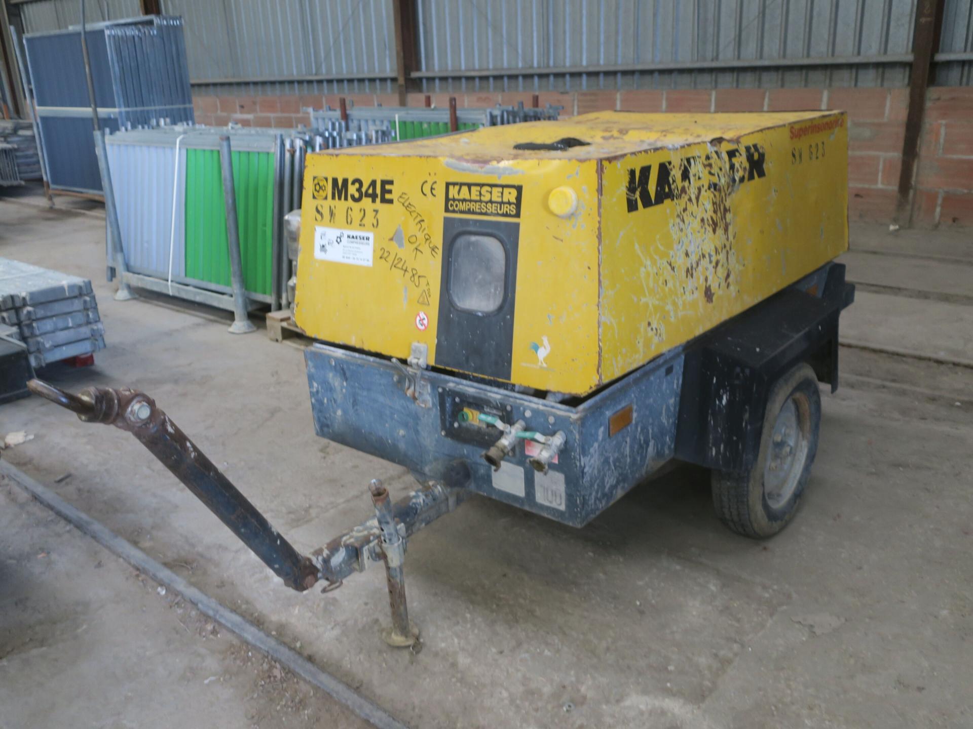 Compresseur électrique de chantier Kaeser M34E n°1455 an 96 12629h fonctionne, non immatriculé, engin de chantier Mise à prix 600