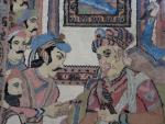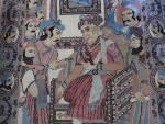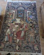 IRAN, Ispahan - Tapis à décor d'une scène de palais avec personnages et faucon. 195 x 125 cm LOT A RETIRER DANS UNE MAISON DE CAMPAGNE DU PAYS D'OTHE (Aube 10) A 20 MIN DE L'HÔTEL DES VENTES DE TROYES.