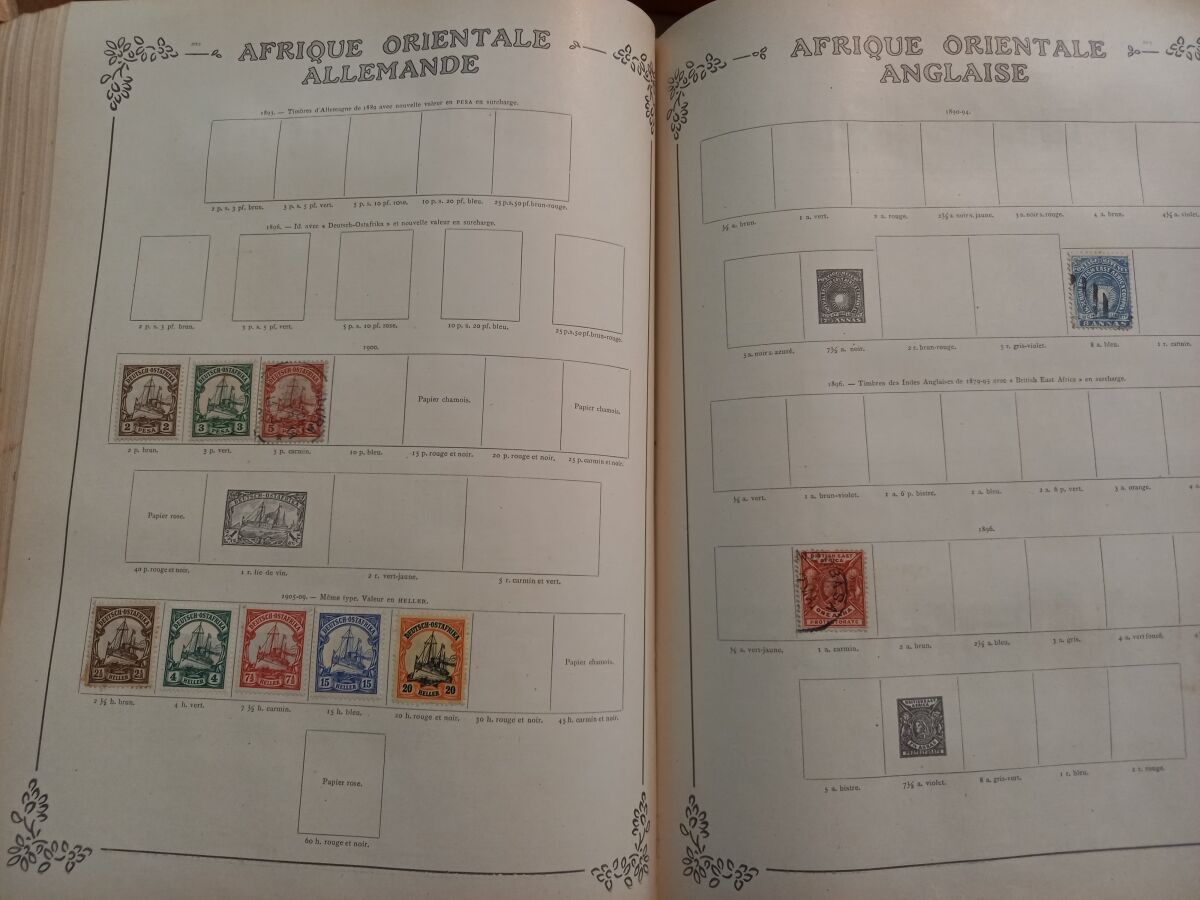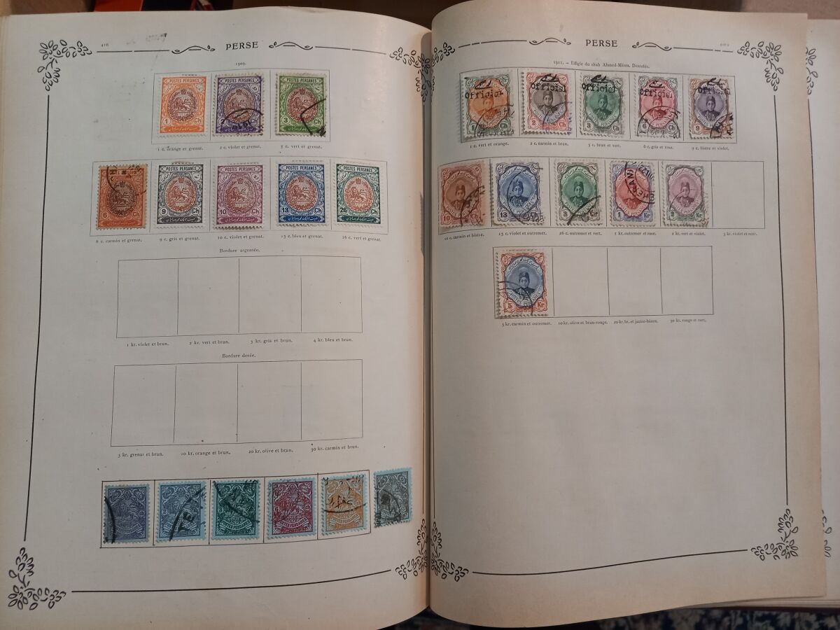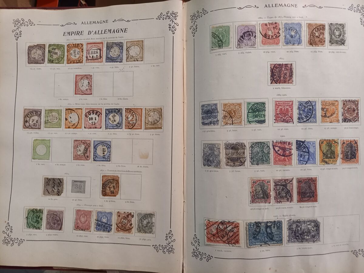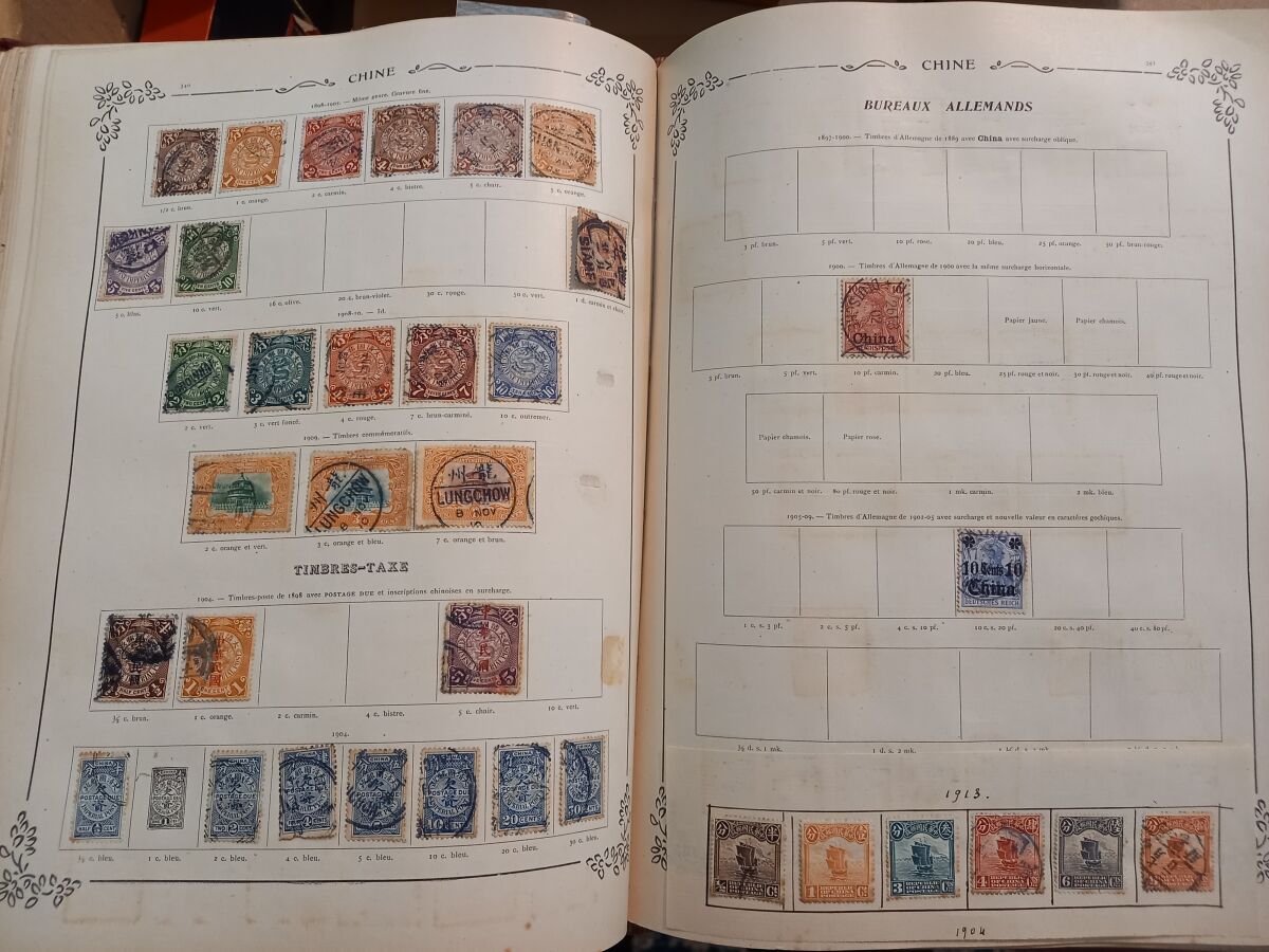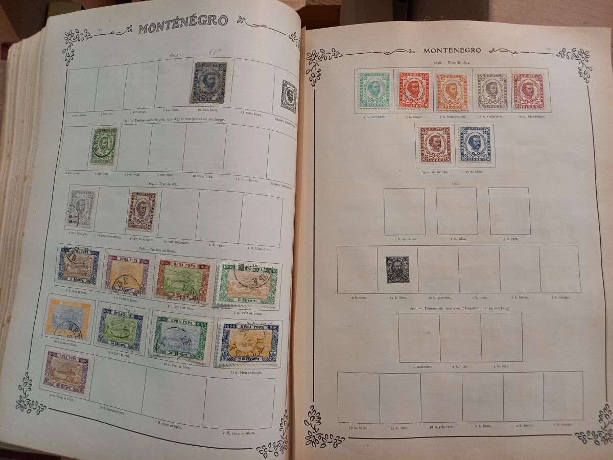 Dans un gros carton, ensemble de timbres de France et Etranger, dont un album de timbres anciens du Monde Entier, tous états