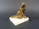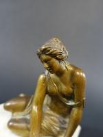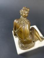École française ép. XVIII's : Nymphe à la coquille d'après le modèle d'Antoine COYSEVOX. Bronze sur socle en marbre blanc. Haut totale : 14 cm (égrénures au socle)