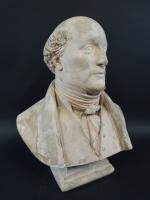 Ecole française vers 1850 : Portrait d'un homme de condition. Plâtre patiné façon terre cuite. Haut. : 54 cm. Expert : Cabinet Lacroix-Jeannest Tél 01.83.97.02.06 - 1002