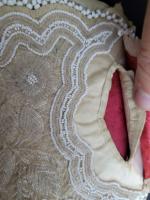 Petit sac ancien 1931 offert lors d'une communion satin et perles anciennes très fragile 20 cm de haut 18 de large, il manque quelques perles, visible sur les images.