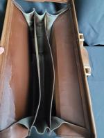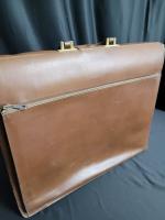 Ancien porte document ou sacoche en cuir avec compartiments et une poche à l arrière avec fermeture éclair.
