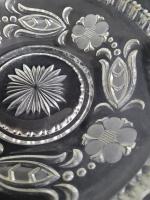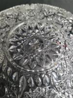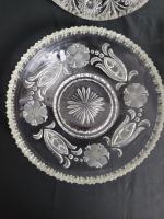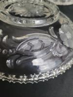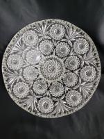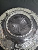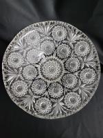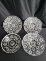 Lot de 4 coupes à fruits en verre moulé pressé dont trois identiques 30 cm de diamètre,7 cm de haut.