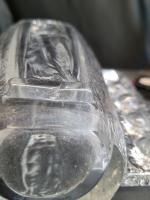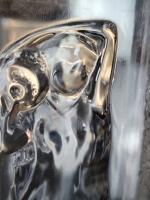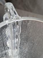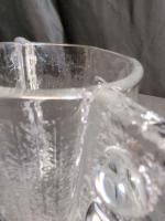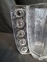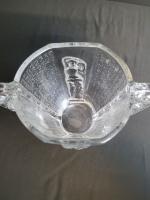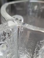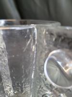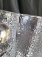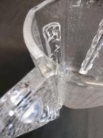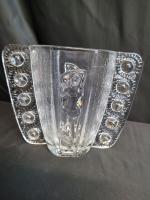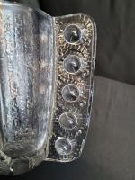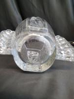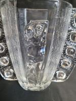 Vase en cristal 17 cm de haut 12,5 cm de diamètre il y a quelques fissures aux niveaux des poignées en haut du vase et une ébréchure visible sur les images.