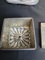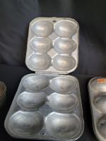 Lot vintage en aluminium comprenant 2 boîtes a oeufs 1 petit moule carré, 16 petits moules ovales, 8 cm de long 6,5 cm de large 4 cm de haut, un peu de rouille sur le moule visible sur les images.