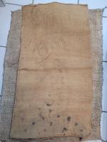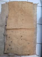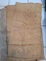 Lot de 6 sacs en toile de jute, 97 cm de haut 50 cm de large, 96 cm de haut 70 cm de large, 69cm de haut 48 cm de large, 98 cm de haut 50 cm de large, 96 cm de haut 52 cm de large, 96 cm de long 52 cm de large. Dans l état, défauts et usure visibles sur les images