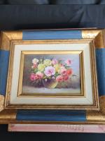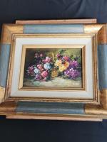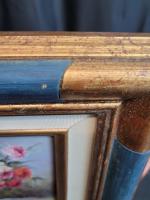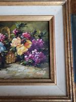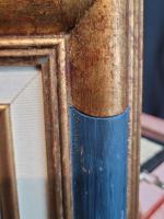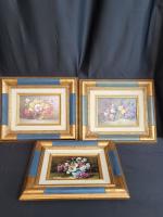 Lot de trois tableaux signés, certificat d authenticité cadre en bois bicolore 33 cm de long 28 cm de large 4 cm épaisseur, bon état, visible sur les images.