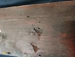 Demi-coque bateau en bois. Traces d'usure visibles sur les images. L x 114.3 H x 25.2cm P x 9.7cm