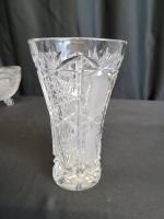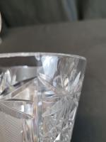 Vase en cristal BRUNO LEHRER taillé main 15 cm de haut 9,5 cm de diamètre, il y a un petit éclat au niveau du bord visible sur les images.