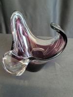 Vide-poche en verre 10 cm de haut 6 cm de haut au plu bas 13cm de diamètre environ.