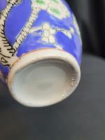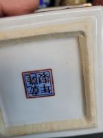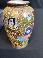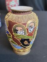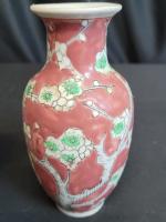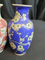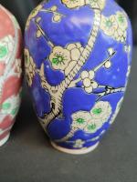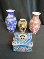 Porcelaine asiatique comprenant 3 petits vases et boite, 9 cm de haut et 15 cm de haut pour les 2 autres 9 cm par 9 cm.