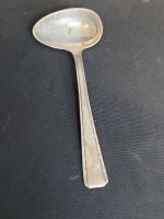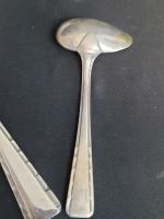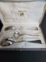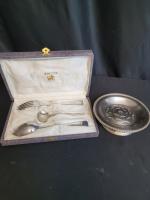 Lot métal argenté comprenant un coffret de 3 couverts ERCUIS et un beurrier. Nettoyage à prévoir.