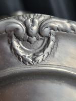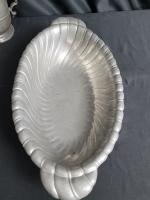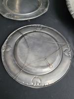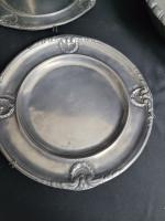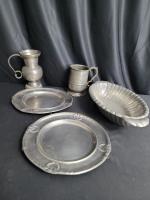 Étain d'art 2 assiette décorative 24 cm de diamètre, la corbeille 38 cm de long 19 cm de large 7,5 cm de haut, la chope 12 cm de haut 8,5 cm de diamètre, le vase 17 cm de haut 9 cm de diamètre, dans l état visible sur les images.