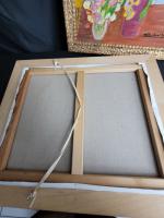 55 cm de long 64 cm de haut 2,5 cm de large pour le tableau avec les fleurs,