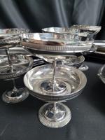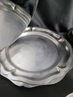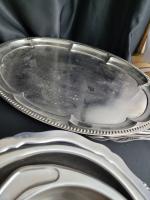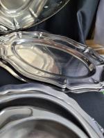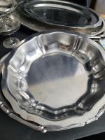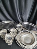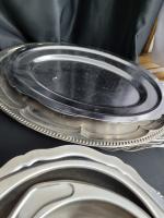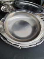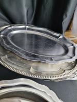 Lot inox 21 plats, ronds, ovales, carrés, creux, coupes à glace, rayures d usages, visible sur les images