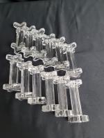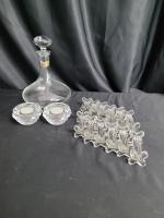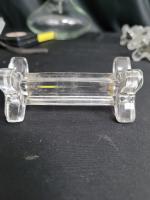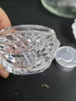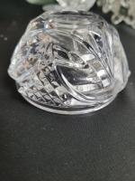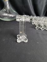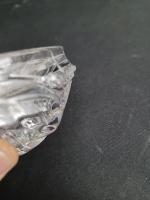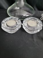2 petits bougeoirs en verre moulée 7 cm de diamètre 4,5 cm de haut, un coin abîmé, visible sur les images.