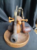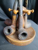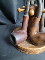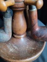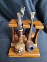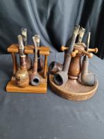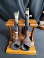 Lot comprenant deux supports à pipes et les 8 pipes, dans l état visible sur les images