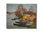 Henri BIARD (1918-2001) Borsd de Loire près Nantes, 1973. Huile sur toile signée et datée en bas à droite 54 x 65 cm (petits manques)