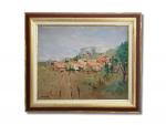 Henri BIARD (1918-2001) Roquefort des Corbières, 1977. Huile sur toile signée en bas à droite 50 x 61 cm