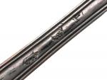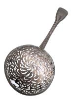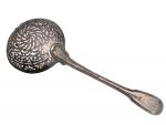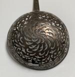 CUILLERE A SAUPOUDRER en argent, modèle filets, anciennement gravée d'armoiries d'alliance effacées XVIIIème, peut-être Arras L.: 22 cm Poids: 88 gr (déchirure au cuilleron)