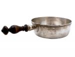 POELON rond en argent uni, le col souligné de filets, le manche en bois tourné Paris, 1809-1819. Orfèvre: AP H.: 6.5 cm D.: 19.5 cm Poids brut: 558 gr