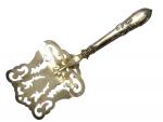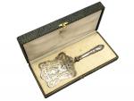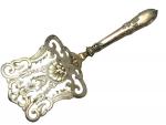 PELLE A ASPERGES en métal argenté ajouré, le manche en argent fourré Minerve L.: 26 cm (dans son écrin d'origine à la forme)