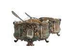 Paire de SALERONS en argent à décor de médaillon rubanés Minerve 3.8 x 6.5 x 4.5 cm Poids net: 38 gr (on y joint deux pelles à sel en argent)
