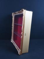 Vitrine murale en bois doré style rocaille de forme rectangulaire. Dimensions : 58 x 47 x 13 cm