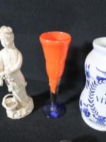 -Statuette de femme asiatique en porcelaine (H : 28cm) ;
