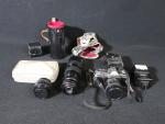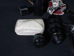 Lot d'objets de photographie comprenant : - appareil photo MINOLTA XGE ; - 2 objectifs KENKO (H de 6 à 22cm) ; - 1 flash MINOLTA (avec leurs étuis). (non testés)