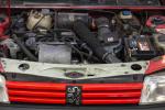 Peugeot 205 GTI 1.6 L, Année 1988, 115CH, 8 cv fiscaux, 205 352 km, boite mécanique 5 vitesses, 4 cylindres de 1580 cm3 à injection électronique et distribution par arbre à cames en tête, numéro de série VF320CB6201450298, compteur arrêté. Elle a été repeinte en rouge a une date non déterminée. Un toit ouvrant, un accessoire d'origine constructeur, a été montée en seconde main. Cette Peugeot 205 GTI mériterait un travail de rénovation en profondeur sur plusieurs points :