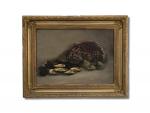 ECOLE FRANCAISE fin XIXème Le panier d'huitres Huile sur toile marouflée sur panneau 32 x 45 cm