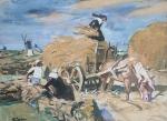 Lucien SIMON (1861-1945) La charrette de foin Gouache et aquarelle signée en bas à gauche 45 x 61 cm à vue (piqûres)