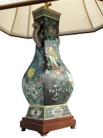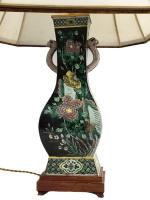 CHINE Vase en porcelaine à décor polychrome et or de fleurs, les anses zoomorphes, monté en lampe H. totale: 73 cm