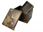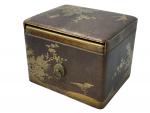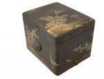 JAPON Boite couverte à décor laqué de paysages arborés avec animaux 13.5 x 17.5 x 14.5 cm (fentes et manque)