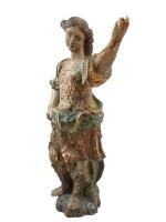 FEMME en armure Bois peint avec restes de polychromie H.: 73 cm (accidents et restaurations)