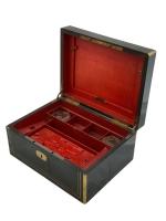 COFFRET en bois noirci et filets de laiton Epoque Napoléon III 14 x 28.5 x 22 cm