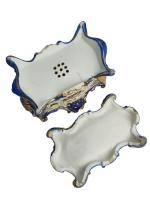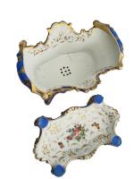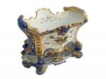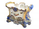 PARIS Jardinière et son support en porcelaine à décor polychrome et or de fleurs H.: 22.5 cm l.: 31 cm P.: 22 cm (fêles)