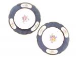 ROUARD - PARIS Paire d'assiettes rondes en porcelaine à décor polychrome et or de fleurs XIXème D.: 24.5 cm