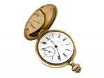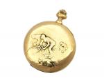 MONTRE savonnette en or jaune diam 4.5 cm à décor de course cycliste poids brut 86.6 g