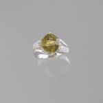 BAGUE en or gris sertie d'un péridot facetté et pavage de diamants sur la monture, poids 7.5 g