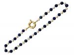 COLLIER de perles de culture blanches et perles de lapis lazuli, fermoir or jaune long 15 cm