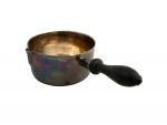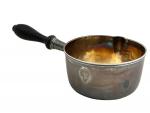 CASSEROLE en argent uni, le col souligné de filets et agrémenté d'un bec verseur, le manche en bois noirci, chiffrée dans un écusson Paris, 1809-1819 H.: 6.5 cm D.: 11.5 cm Poids brut: 194 gr